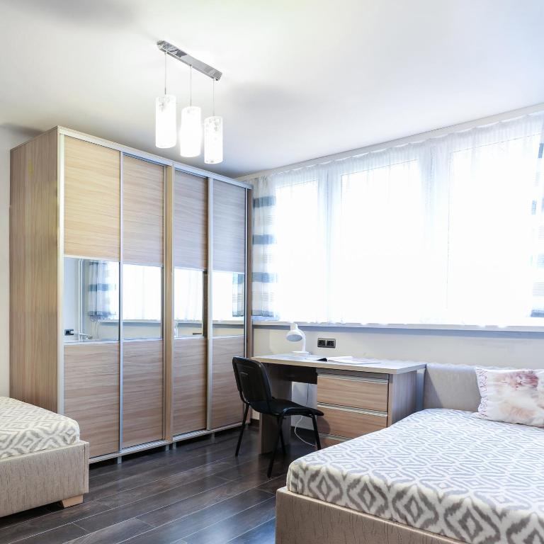 Situated in Kraków, 1.2 km from St. Mary's Basilica and 1.2 km from the centre, LUXURIOUS APARTMENTS Cracow features air-conditioned accommodation with free WiFi, and a terrace. There is a private entrance at the apartment for the convenience of those who stay. The apartment has a sauna and a lift. The apartment provides guests with a balcony, city views, a seating area, satellite flat-screen TV, a fully equipped kitchen with a dishwasher and an oven, and a private bathroom with walk-in shower and a hair dryer. A microwave, a toaster and fridge are also offered, as well as a coffee machine and a kettle. At the apartment complex, units have bed linen and towels. There is a coffee shop, and a minimarket is also available. Popular points of interest near the apartment include Lost Souls Alley, Schindler Factory Museum and St. Florian's Gate. The nearest airport is John Paul II International Kraków–Balice, 24 km from LUXURIOUS APARTMENTS Cracow, and the property offers a paid airport shuttle service.